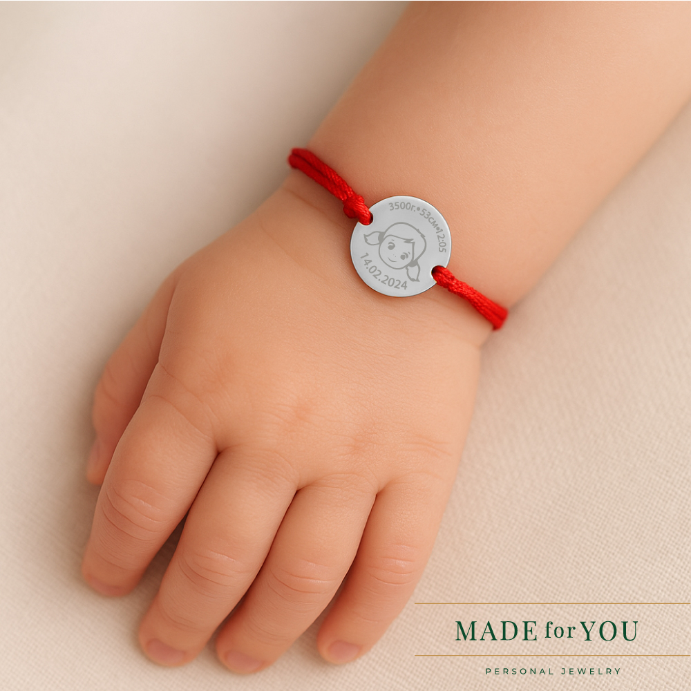 Сребърна гривна с конец – Дете момиче: персонализация и гравиране