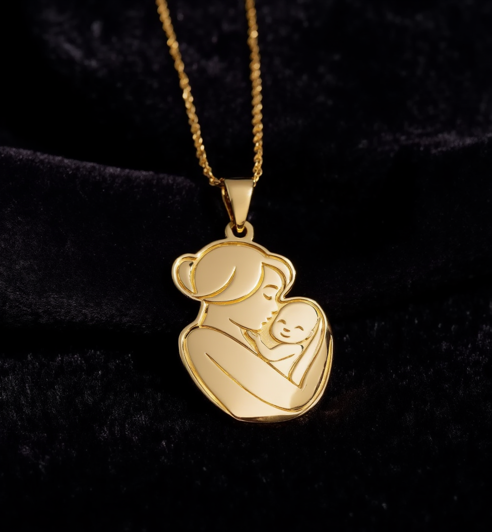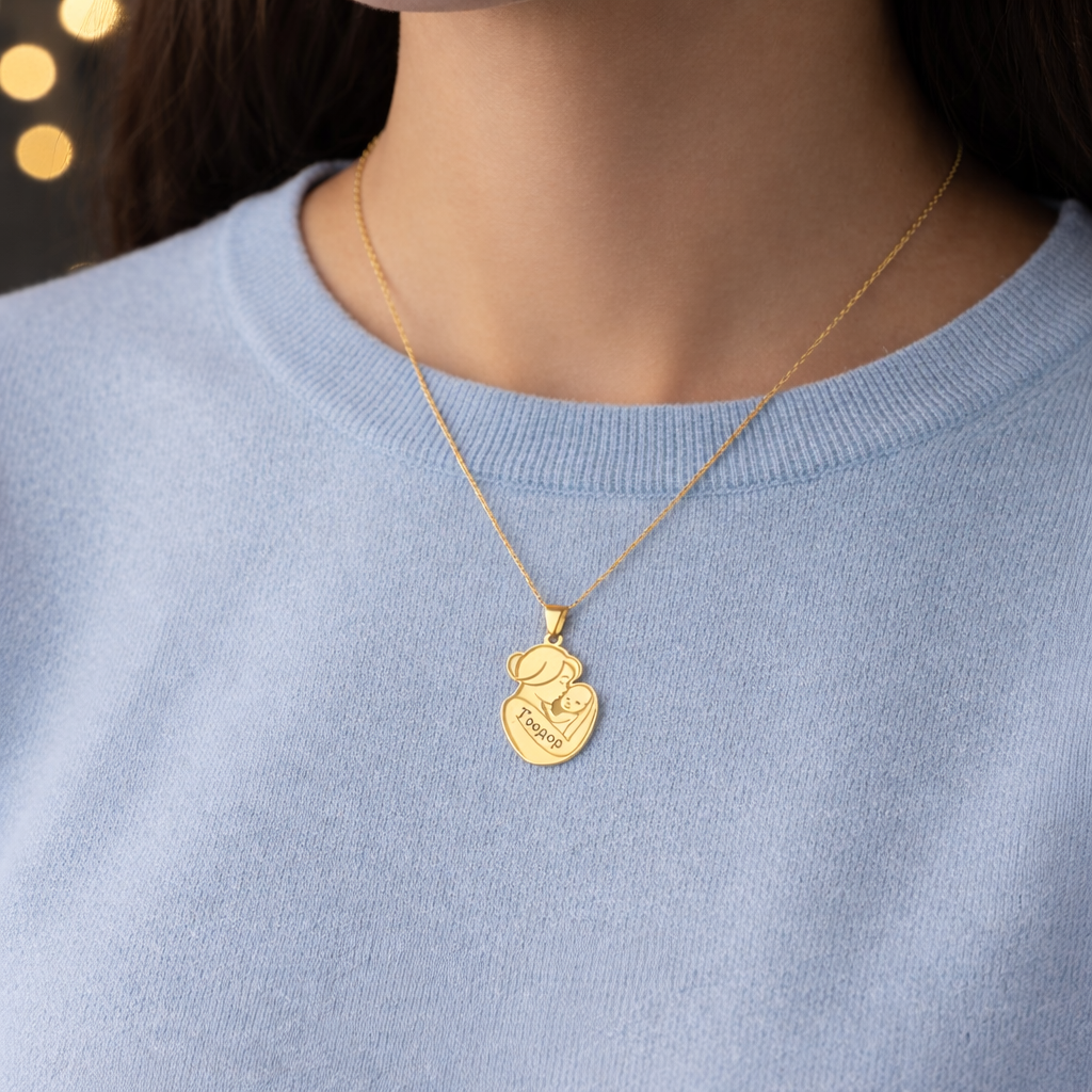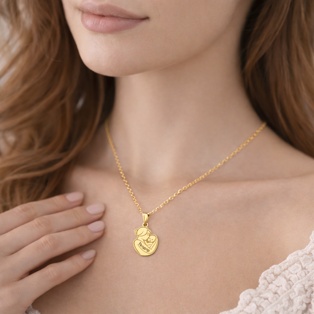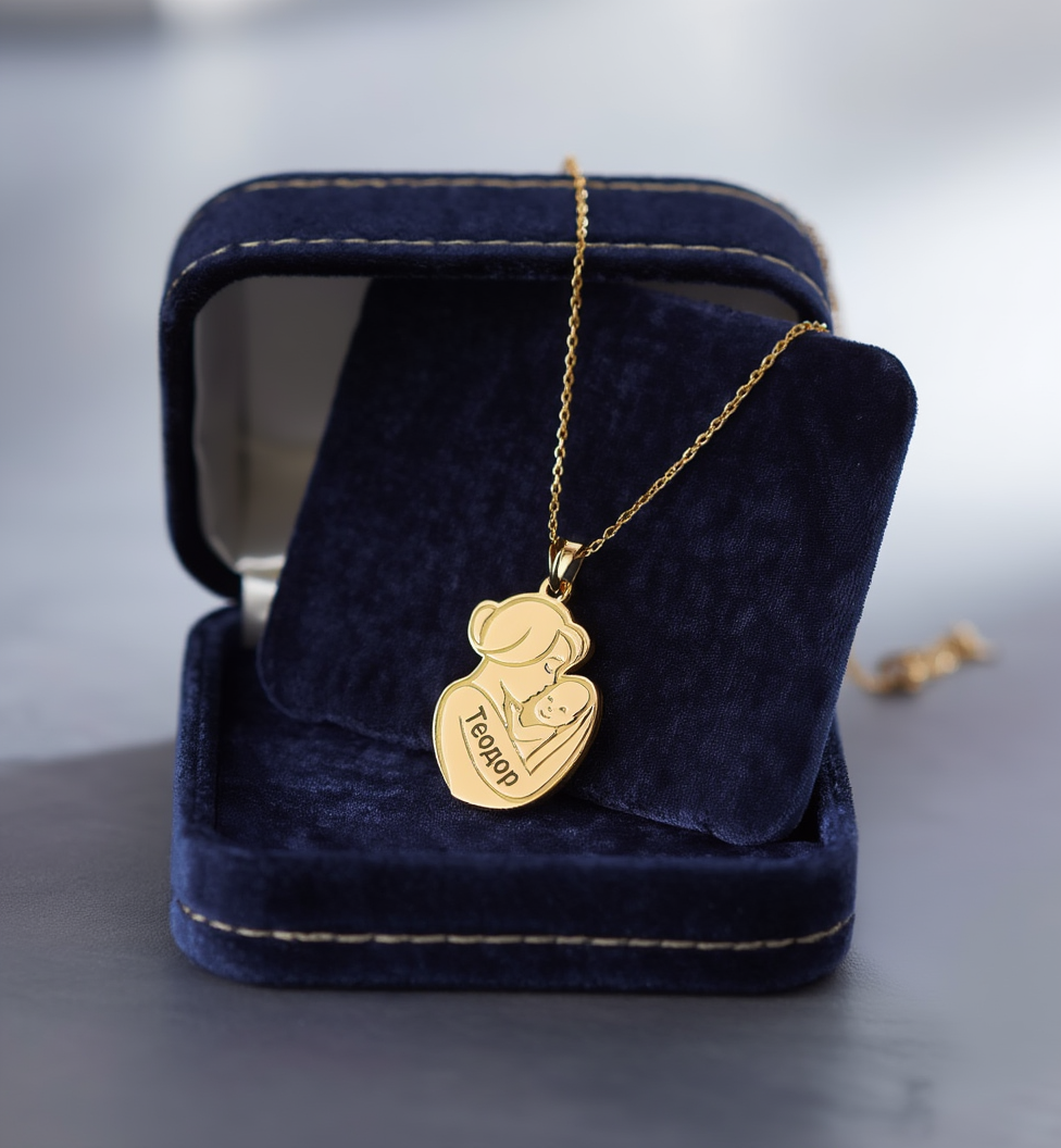 Златна персонализирана висулка – Майка с бебе